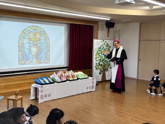 さまざまなことに感謝し、これからも子どもたちの健やかな成長を願い、私たちの務めがよりよく果たすことができるよう、家族と保育者もお祈りをいたしました。