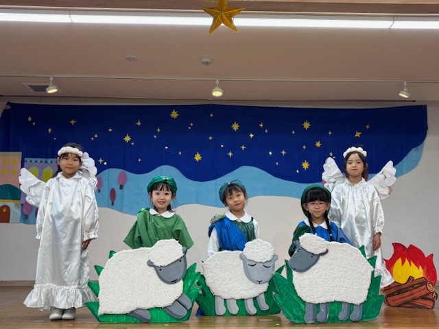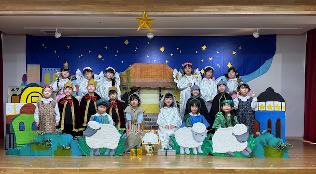 降誕劇の発表、クリスマス会では、お客さんの前で緊張もありましたが、見てもらえるとよろこびをもって取り組んでいる様子がありました。