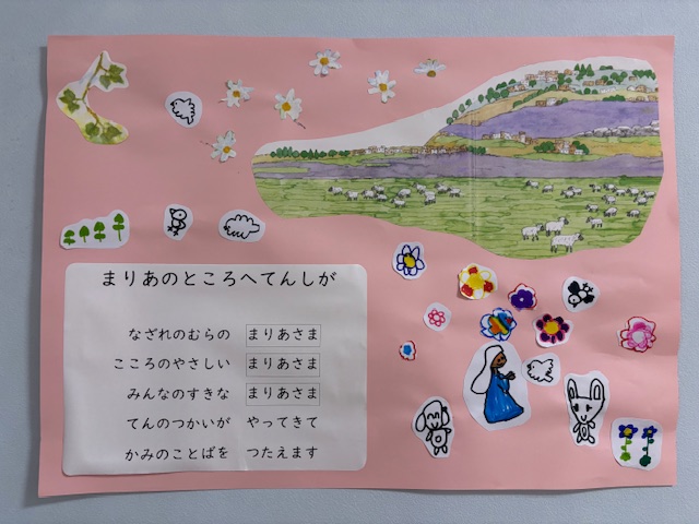 こうして待降節のお話を聞きながら過ごす日々の中で、ぼく私の頑張り・嬉しかったことなどを神さまにお伝えしながら、あたたかい気持ちをこめてかいばおけに一本ずつおささげしていきました。