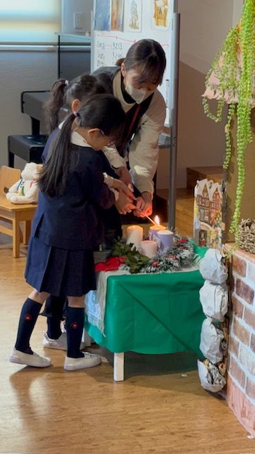 25日より早いですが、4本目のろうそくを灯し、しめくくりを行いました。