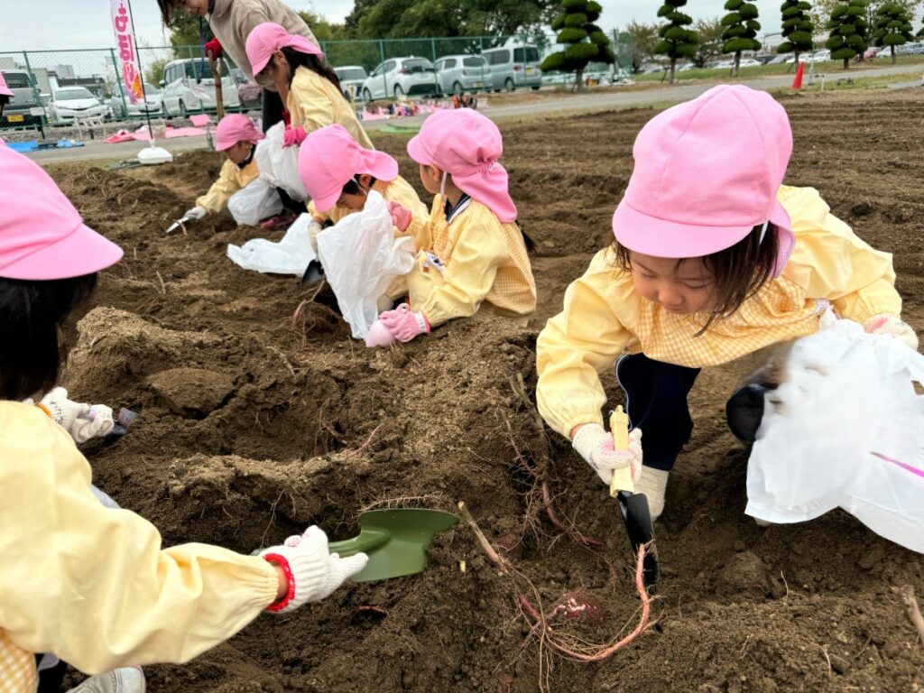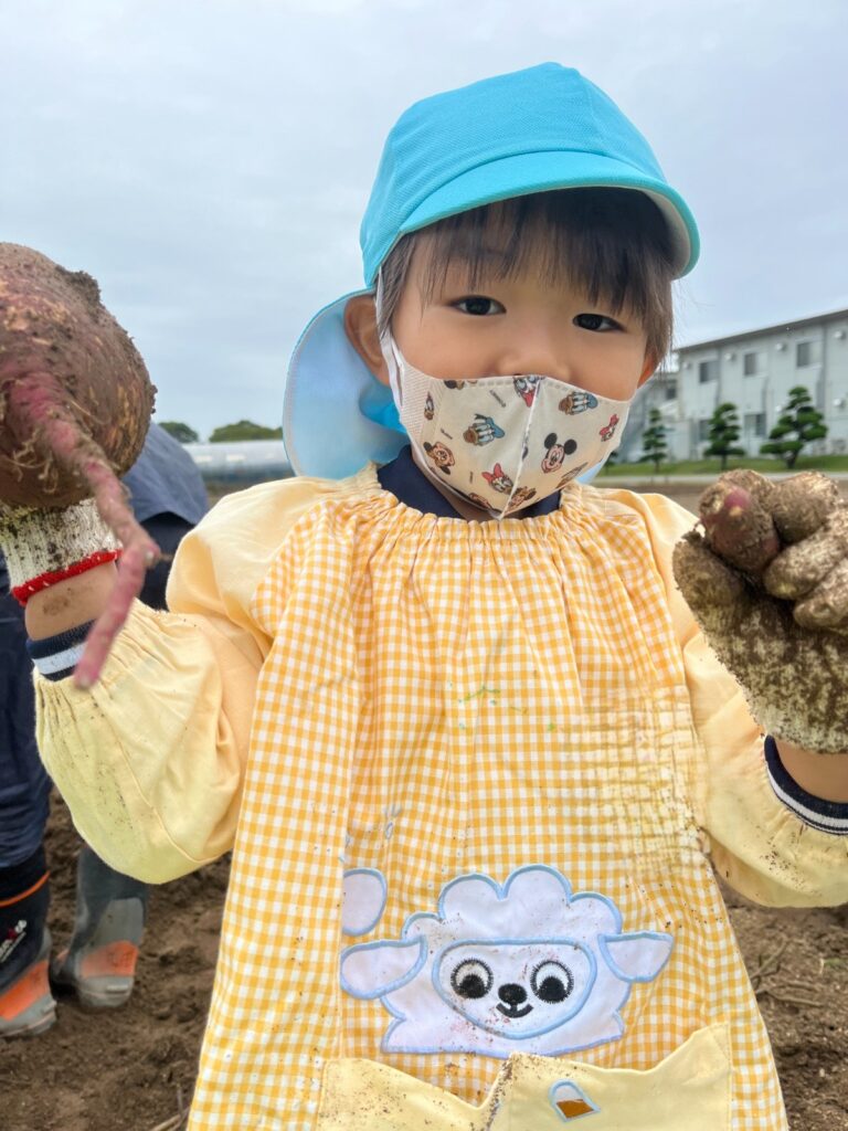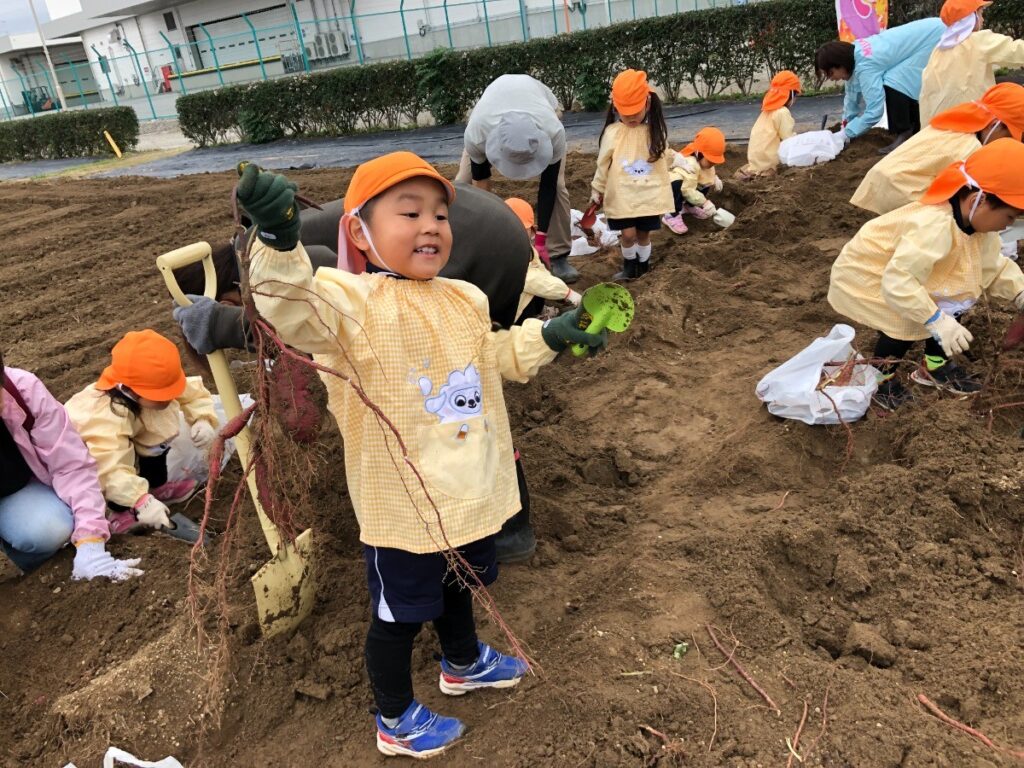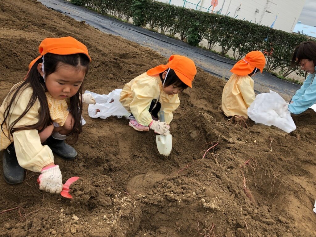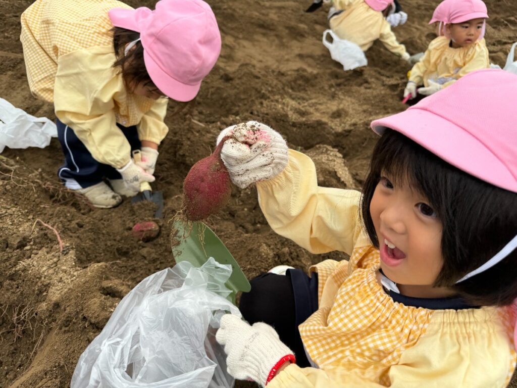 「おいも、みーつけた!」「おいもが重くてとれない…」「3個もつながってたー」と大喜びの子どもたち。