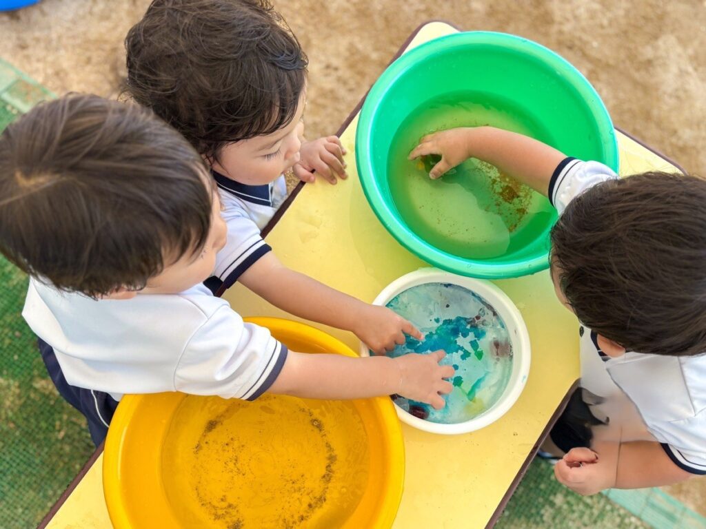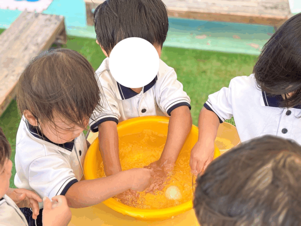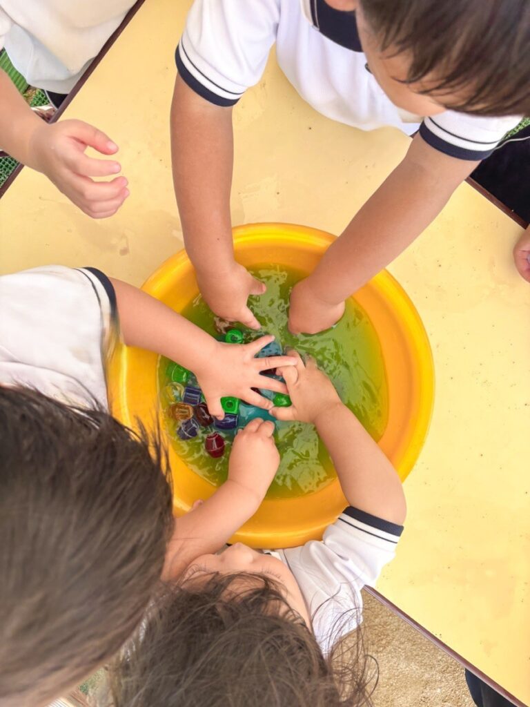 ビーズを見つけた子ども達。