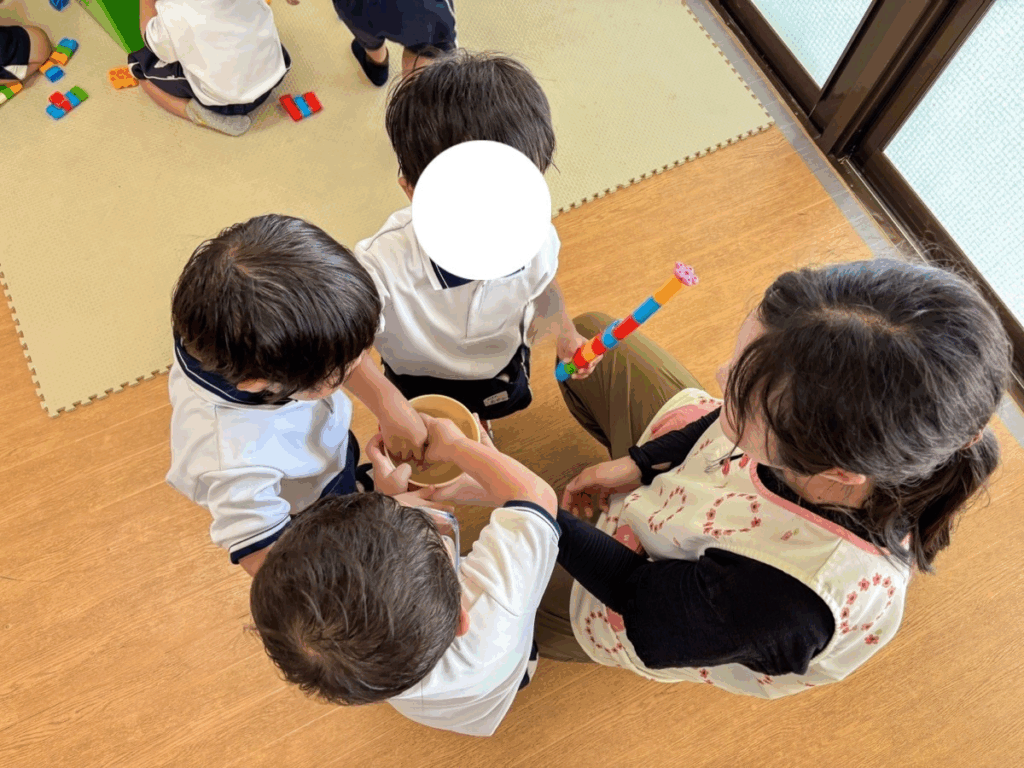 手でじっと持っていられる子もいれば