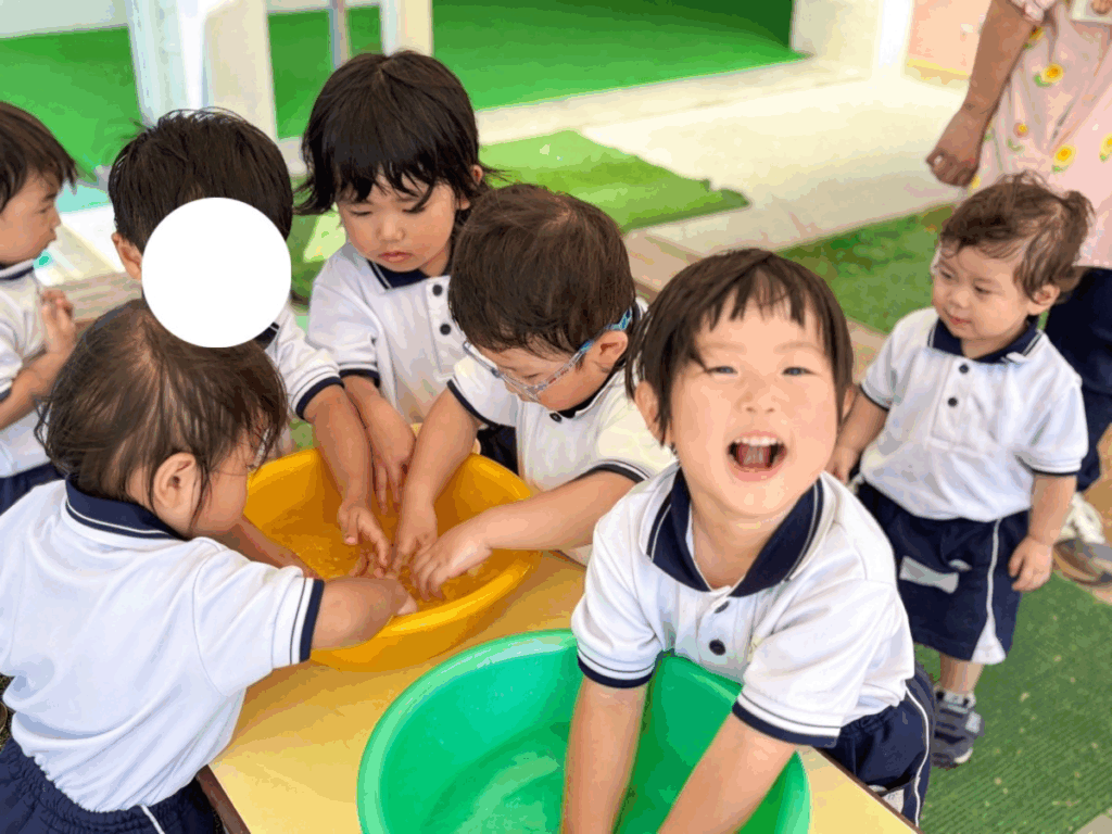 子ども達のあたたかい体温でどんどん溶けていく氷。