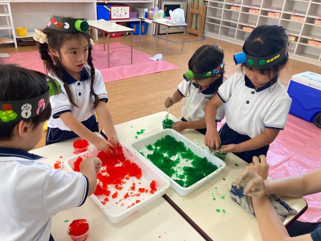 水が入った片栗粉コーナーでは、表情が変わったよ!