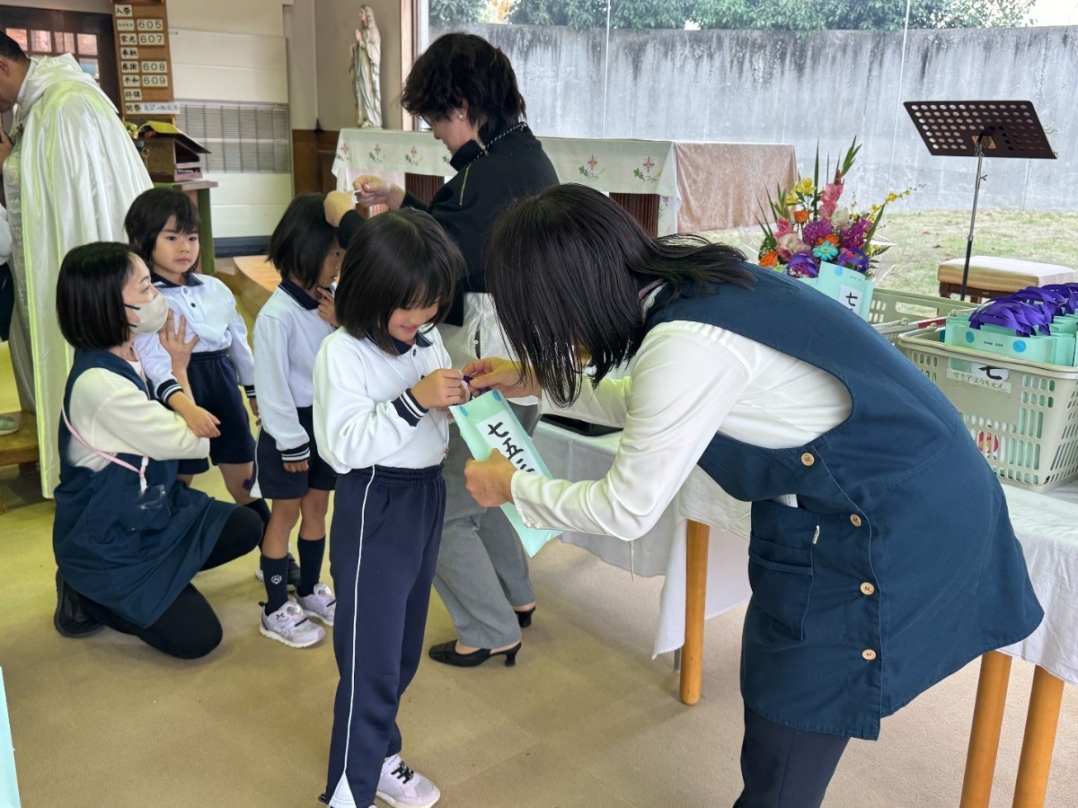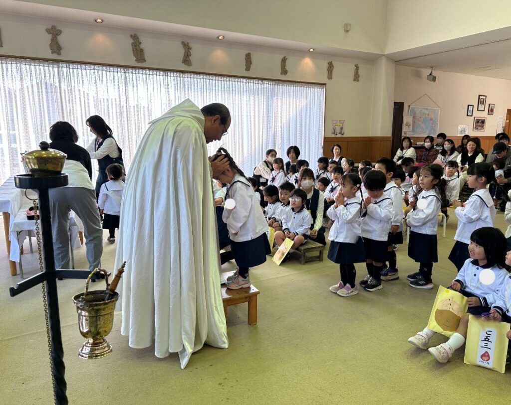 ホルヘ神父様がマリア幼稚園の七五三のお祝いに来て祝福してくださいました!