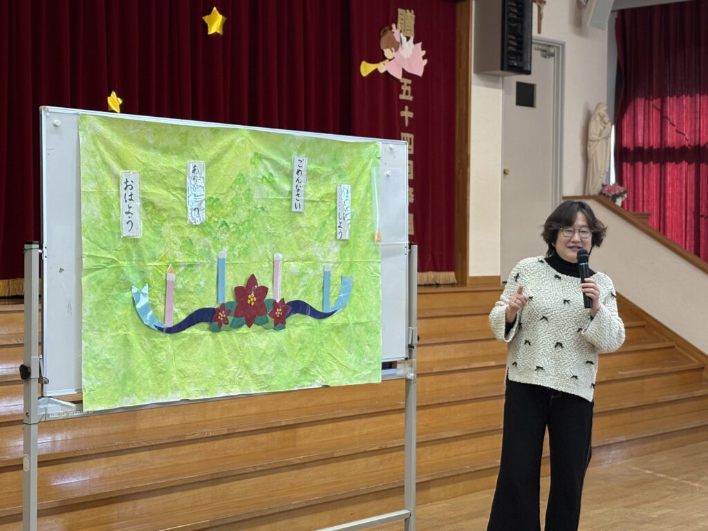 クリスマスの集いでは年長さんの聖劇を通して「クリスマスって何の日?」を教えてもらいました。