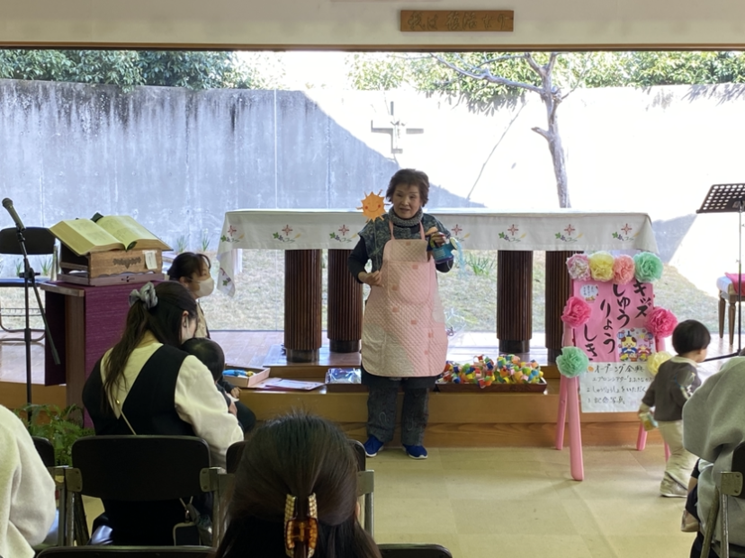 修了式では、「おおきなかぶ」のエプロンシアターを楽しみました😊