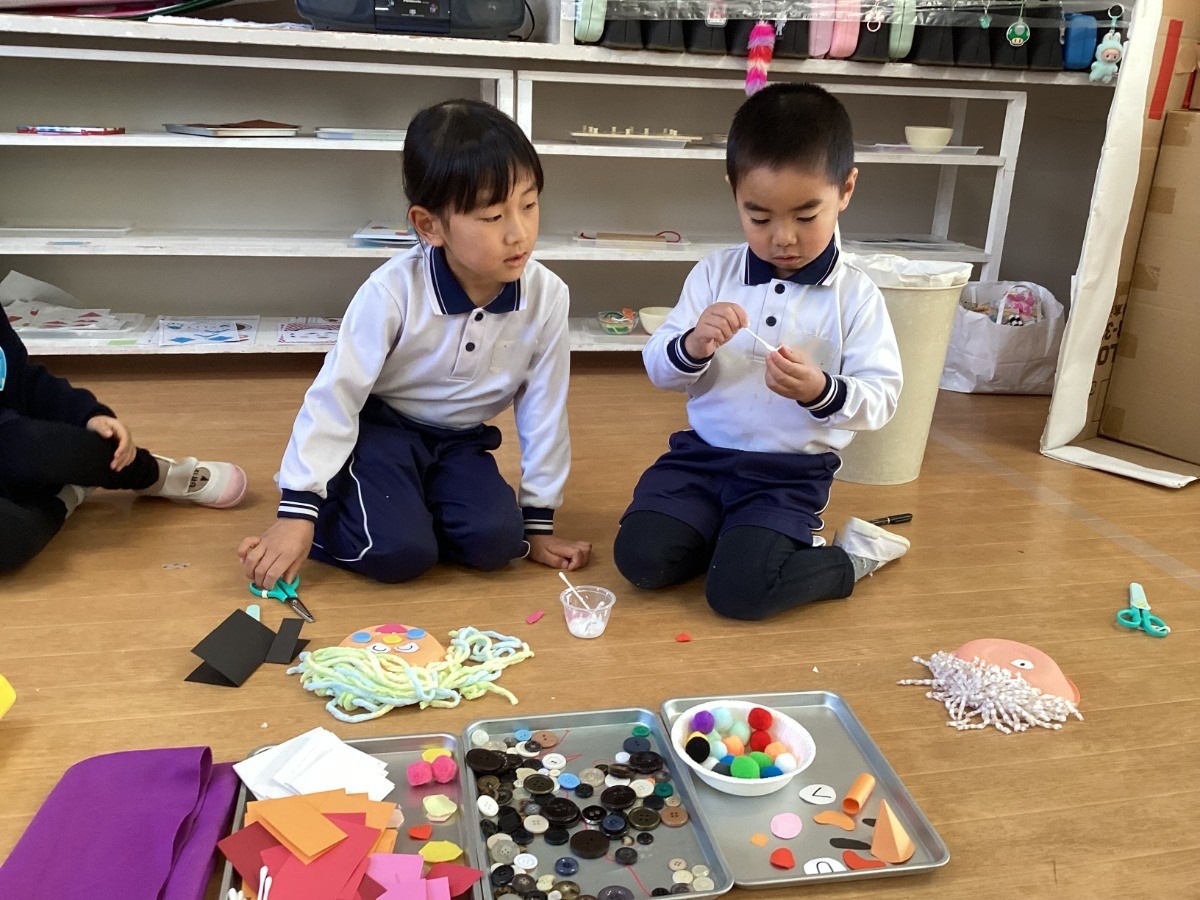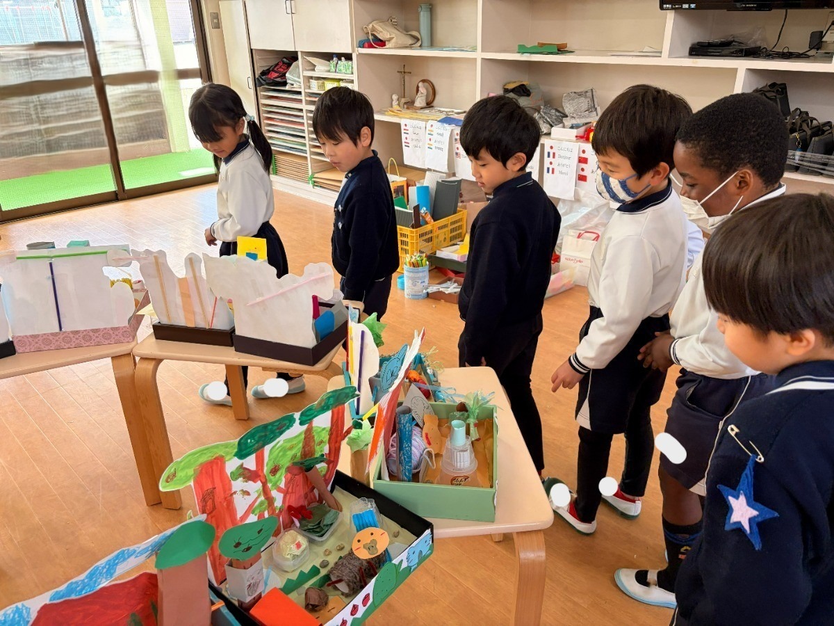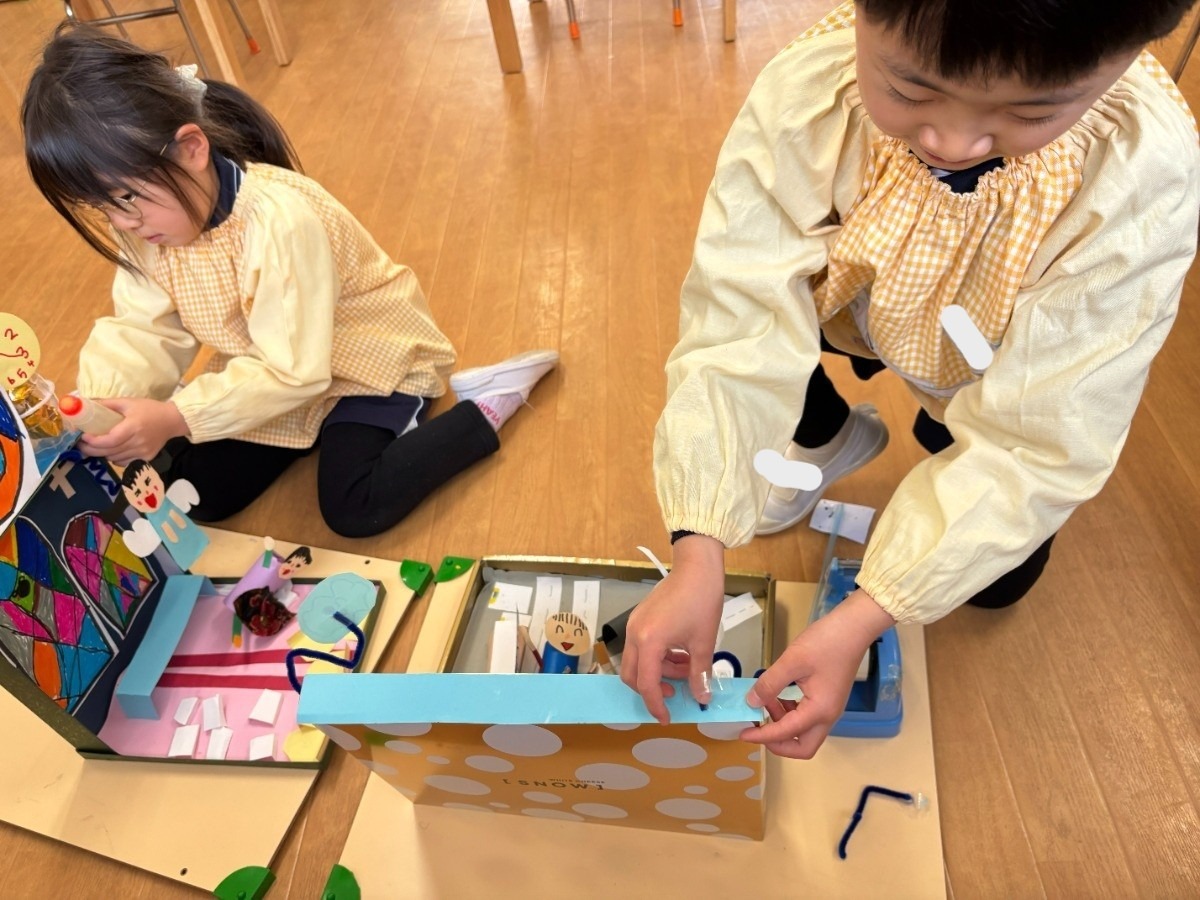 マリア幼稚園のせいさく展でも、子どもたちの小さなひらめきや発見が集まり、