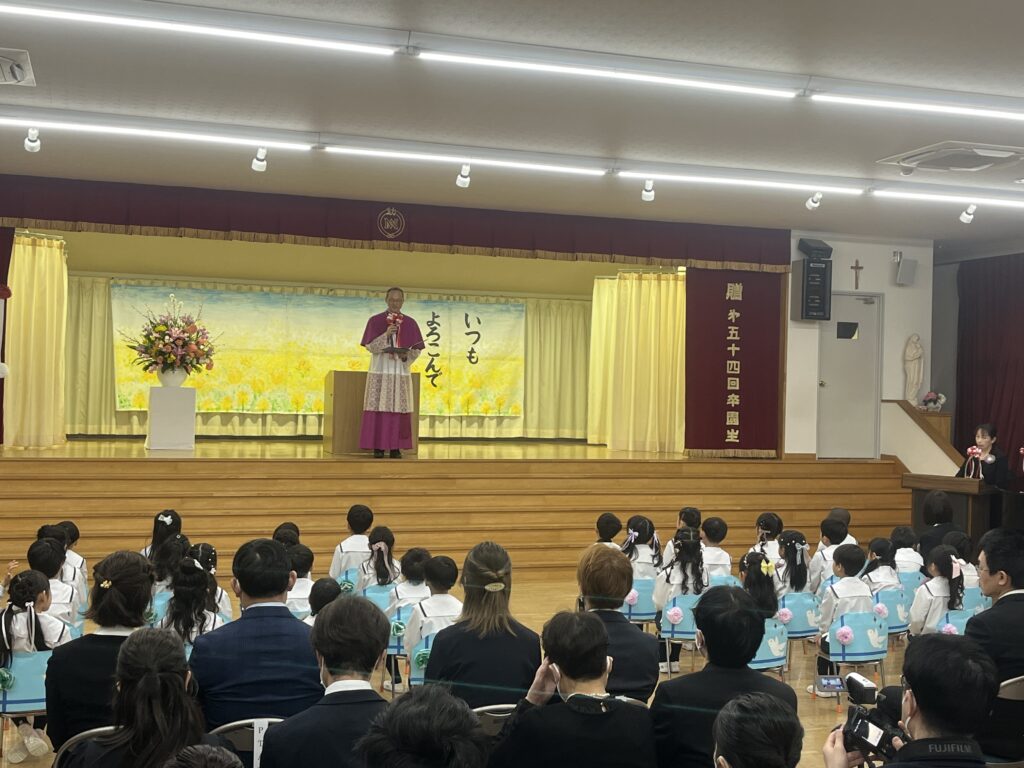 卒園式では、司教様よりよろこびの言葉を頂きました。今まで支えてくださった皆さまに感謝の気持ちが大きくなりましたね。